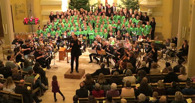 Vorweihnachtliche Musik zum Zuhören und Mitsingen (Foto: Claudia Richter)(cr) In der evangelischen Michaelskirche fand gestern das traditionelle Adventsliedersingen der Musikschule statt. Über 200 Musikerinnen und Musiker sorgten unter der Gesamtleitung von Bezirkskantor Achim Plagge für eine stimmungsvolle Veranstaltung.