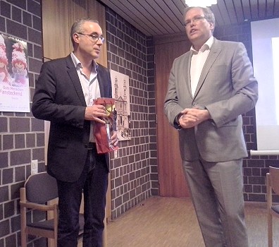 Diskussion zum Thema Flüchtlingspolitik mit Dr. Bernhard Lasotta Dr. Bernhard Lasotta (li.) und Dr. Albrecht Schütte. (Foto: privat)(bro) (vb) Der CDU Stadtverband Eberbach hatte am 7. Dezember zusammen mit dem CDU-Landtagskandidaten Dr. Albrecht Schütte zu einer Informationsveranstaltung mit anschließender Diskussion zum Thema Flüchtlingspolitik in das katholische Pfarrheim eingeladen.