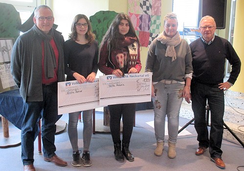 Der diesjährige Anerkennungspreis für hervorragende Leistungen im Bereich Bildende Kunst, dotiert mit jeweils 100 Euro, geht auf Vorschlag der Kunstlehrerin Melanie Schwinn an Melike Akdeniz, Emma Berner und Erkut Kocamaz.