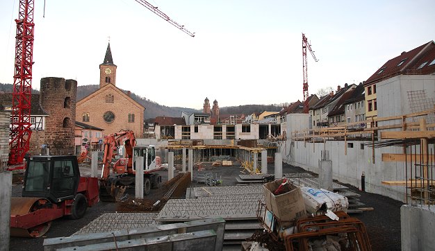Schotterplatz ist nicht mehr wiederzuerkennen (Foto: Hubert Richter)(hr) Gut voranzugehen scheint der Neubau des “Rosenturm-Quartiers” zwischen Neckar- und Brückenstraße.