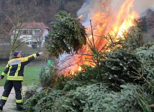 Für die Verantwortlichen ist das ein gutes Beispiel der Verbundenheit zwischen Feuerwehr und Bevölkerung. Die wurde durch ein schönes Schauspiel belohnt: Nach kurzer Anlaufzeit, während die Tannenbäume durch die Feuchtigkeit nicht so recht anbrennen wollen, setzte ein munteres Prasseln und Brodeln ein, bis auch der letzte Baum eine Stunde später zu Asche geworden ist.