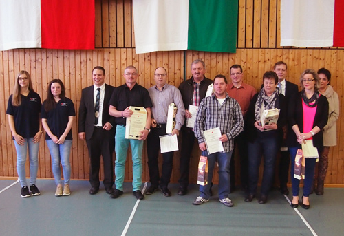 Für zehn Blutspenden wurden Andre Eschenbach, Christian Kappes, Christopher Menges, Daniel Schlag, Hans-Peter Riedinger, Philipp Geier, Sarah Court, Simone Rehn, Thomas Mayerhöfer und Veronika Stolz mit einer DRK-Ehrennadel bedacht. 25 Blutspenden wurden Alexandra Ihrig Ralf Schnörr und Ute Schmitt abgenommen. Für 50 Spenden wurden Auguste Marie Ludigkeit, Gerhard Schölch, Hildegard Pfister, Rainer Schulz, Thomas Kaiser, Waltrud Schnörr und Wolfgang Hettinger ausgezeichnet. Absoluter Spitzenreiter war Ralf Ihrig, der für 75 Blutspenden eine Ehrennadel entgegen nehmen durfte.