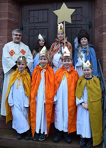 Zwei Gruppen Sternsinger waren in Friedrichsdorf unterwegs (Foto:privat)(tw) Nachdem die Sternsinger in den Eberbacher kath. Pfarrgemeinden schon am Dreikönigstag unterwegs waren, konnten sich die Menschen in der Filialgemeinde Maria Rosenkranzkönigin in Friedrichsdorf am Sonntag auf einen Besuch der Könige freuen.