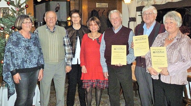 Drei Ernennungen zum Ehrenvorstand  (Foto: privat)(bro) (ir) Die Aktiven des Gesangvereins „Liederkranz“ Gammelsbach trafen sich im Dezember im Gammelsbacher Gasthaus „Zur Krone“, um zusammen mit passiven Mitgliedern, Partnern und Freunden des Vereins das Vereinsjahr harmonisch ausklingen zu lassen. Schöne Weihnachtslieder und gar nicht weihnachtlich „Lord of the dance“ mit Torsten Johann als Solist bildeten genau den Rahmen für die dann folgenden Ehrungen.