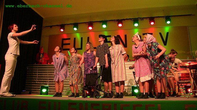 Zwischen den Programmpunkten gab es Ordensverleihungenn und Schunkelwalzer. Rahmenthema der Sitzung war das “Eulen-TV”, auf den Tischen lagen Fernbedienung und 3D-Brillen bereit. Für die Unterhaltung mit Keyboard und Gesang sowie die passenden Tuschs sorgte in bewährter Manier wieder der Allrounder Dennis Nussbeutel. Sitzungsregie führte Carola Zimmermann.