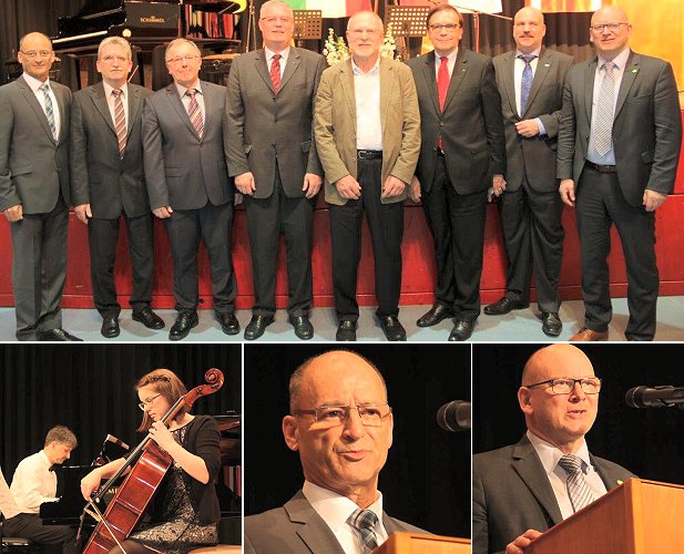 Hoffen auf eine hohe Wahlbeteiligung beim Bürgerentscheid am 6. März (Fotos: Thomas Wilken)(tom) Ganz im Zeichen der angestrebten Oberzent-Fusion und des Bürgerentscheids darüber am 6. März stand der Neujahrsempfang in der Alten Turnhalle. Zwar in Beerfelden, aber mit Rothenberg, Sensbachtal und Hesseneck für alle vier Orte des südlichen Odenwaldkreises gemeinsam. Ein weiteres Thema zog sich aufgrund seiner Aktualität ebenfalls wie ein roter Faden durch die Reden: die Flüchtlingsproblematik.