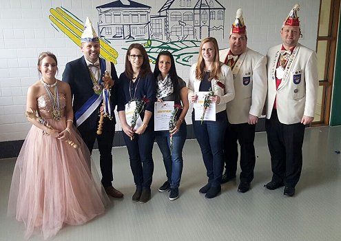Übergeben wurde der Trainerschein und das Zertifikat bei der Baden-Pfalz-Meisterschaft im Karnevalistischen Tanzsport des Bundes Deutscher Karneval e.V. Austragungsort dieses Jahr war die Fritz-Mannherz-Halle in Reilingen. Begleitet wurden sie von der kompletten Prinzengarde und dem Tanzmariechen Anna-Lena Kappes, denn diese tanzten bei der Meisterschaft mit. Auch das diesjährige Prinzenpaar Yvette I. und Florian I. sowie Präsident Udo Geilsdörfer und Elferrat Jens Müller unterstützten die Mädchen.