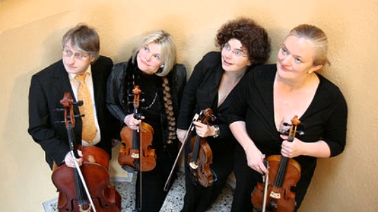 Es spielen Christiane Wojciechowski-Nack - 1. Violine, Susanne Kemner - 2. Violine, Gabriele Ulatowski (Lehrkraft an der Musikschule Eberbach) - Viola und Hans Nasshan - Cello.