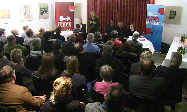 Hilde Mattheis sagte einleitend, die SPD wolle vor allem Krankenhäuser finanziell sichern und die ärztliche Versorgung regional besser verteilen. Mit dem neuen Versorgungsstärkungsgesetz seien schon Verbesserungen erreicht worden. Für die Verteilung der Arztsitze seien aber die Kassenärztlichen Vereinigungen zuständig, die im Laufe des Abends aus dem Publikum scharf kritisiert wurden. Aber auch eine Reform des Medizinstudiums sei wichtig, um die Hausärzteversorgung zu verbessern, sagte Mattheis.