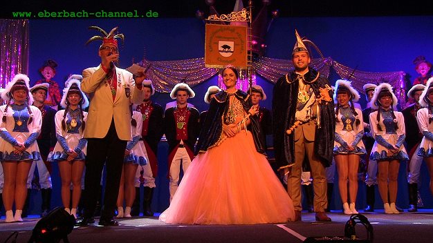 Weil der große Eberbacher Fastnachtsverein 155 Jahre alt wird (die Quersumme ergibt die närrische Zahl 11), gibt es auch wieder ein Jubiläums-Prinzenpaar, das nach der musikalischen Einleitung durch den Fanfarenzug, dem Einmarsch der Aktiven und der Begrüßung durch KGK-Präsident Udo Geilsdörfer von Sitzungspräsident Ralph Brenneis feierlich angekündigt wurde. Prinzessin Yvette I. und Prinz Florian I. verlasen ihre Proklamation, bevor das eigentliche Sitzungsprogramm startete.