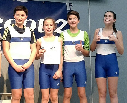 Ergänzt durch Sara Rogowska gingen diese drei Ruderer noch im „Vereins-Vierer U15“ an den Start. In einer Staffel mussten 2.000 Meter zurückgelegt werden und auch das schaffte der RGE-Vierer in der schnellsten Zeit vor den Teams aus Mannheim und Karlsruhe. Somit wurde Sieg Nummer drei an diesem Tag für die RGE notiert.