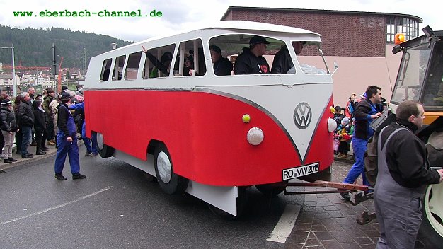 Mit dabei waren wieder viele Vereine und Gruppen aus Hirschhorn, Eberbach und der gesamten Region. Acht Musikgruppen sorgten für die passenden Rhythmen und Mitsing-Melodien. Unter den Themen, die in teils aufwändigen Motivwagen dargestellt wurden, waren die Windkraftdiskussion und der VW-Abgasskandal. Von einigen Regentropfen ließen sich die Narren und Tausende Zuschauer am Zugweg die gute Laune nicht verderben.