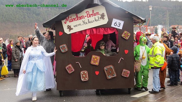 Mit dabei waren wieder viele Vereine und Gruppen aus Hirschhorn, Eberbach und der gesamten Region. Acht Musikgruppen sorgten für die passenden Rhythmen und Mitsing-Melodien. Unter den Themen, die in teils aufwändigen Motivwagen dargestellt wurden, waren die Windkraftdiskussion und der VW-Abgasskandal. Von einigen Regentropfen ließen sich die Narren und Tausende Zuschauer am Zugweg die gute Laune nicht verderben.