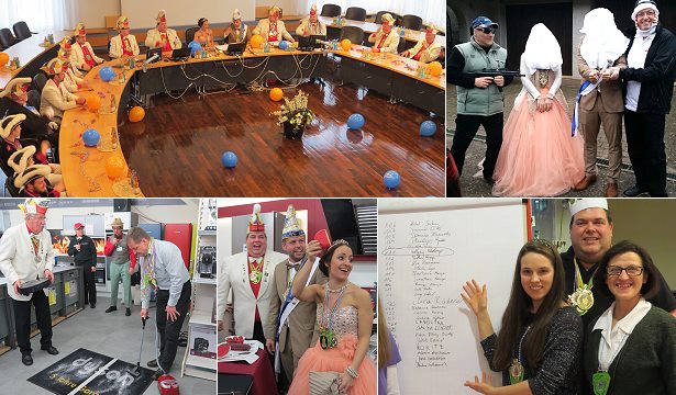 Während des Beratungsgesprächs zwischen KGK-Präsident Udo Geilsdörfer, dem Prinzenpaar und der Firmeninhaberin Susanne Reinig sowie ihrem "Azubi" Markus Scheurich stürmte mit Ludwig Sparlampe (Ralph Brenneis) ein echter EU-Kontrolleur in die Geschäftsräume, um eine offizielle Überprüfung diverser Elektrogeräte durchzuführen. Während der von Barbara Menges geplanten Rosenmontagsaktion wurden mit viele Humor und Klamauk Saug- Trocken- und Rührgeräte getestet und verglichen. Die Geräte mit der höchsten Energie-Effizienz wurden mit einem närrischen Label ausgezeichnet, und die Firma Electroplus Reinig darf jetzt auch mit Zustimmung der KGK das Plus im Namen tragen. Wie es in Unternehmen nach der Verleihung einer besonderen Auszeichnung üblich ist, lud Susanne Reinig mit ihrem Team zu einer Feier in den Geschäftsräumen ein.