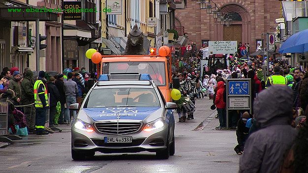 Unter den fast 80 Zugnummern waren alle vier Eberbacher Karnelvalvereine sowie mehrere Privatinitiativen, Sportvereine und Gruppen. Auch aus den Eberbacher Ortsteilen sowie Hirschhorn, Neckargemünd, Heddesbach, Waldbrunn, Hesseneck und Sensbachtal waren Teilnehmer dabei. Musik kam vom Fanfarenzug Eberbach, der Feuerwehrkapelle Waldkatzenbach und drei Guggemusiken.
