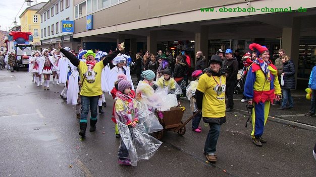 Unter den fast 80 Zugnummern waren alle vier Eberbacher Karnelvalvereine sowie mehrere Privatinitiativen, Sportvereine und Gruppen. Auch aus den Eberbacher Ortsteilen sowie Hirschhorn, Neckargemünd, Heddesbach, Waldbrunn, Hesseneck und Sensbachtal waren Teilnehmer dabei. Musik kam vom Fanfarenzug Eberbach, der Feuerwehrkapelle Waldkatzenbach und drei Guggemusiken.