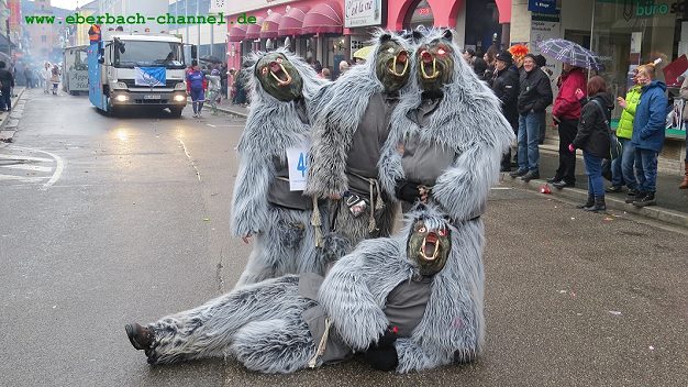 Während in der Region einige Umzüge wegen des schlechten Wetters abgesagt wurden, zogen die Eberbacher ihr Ding durch. Und sie hatten sogar ein wenig Glück, denn im Vergleich zum Vormittag kam während des Umzugs deutlich weniger Regen runter. Zeitweise regnete es überhaupt nicht.