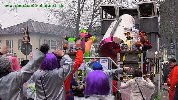 Unter den fast 80 Zugnummern waren alle vier Eberbacher Karnelvalvereine sowie mehrere Privatinitiativen, Sportvereine und Gruppen. Auch aus den Eberbacher Ortsteilen sowie Hirschhorn, Neckargemünd, Heddesbach, Waldbrunn, Hesseneck und Sensbachtal waren Teilnehmer dabei. Musik kam vom Fanfarenzug Eberbach, der Feuerwehrkapelle Waldkatzenbach und drei Guggemusiken.