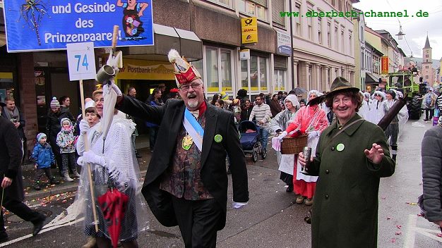 Unter den fast 80 Zugnummern waren alle vier Eberbacher Karnelvalvereine sowie mehrere Privatinitiativen, Sportvereine und Gruppen. Auch aus den Eberbacher Ortsteilen sowie Hirschhorn, Neckargemünd, Heddesbach, Waldbrunn, Hesseneck und Sensbachtal waren Teilnehmer dabei. Musik kam vom Fanfarenzug Eberbach, der Feuerwehrkapelle Waldkatzenbach und drei Guggemusiken.