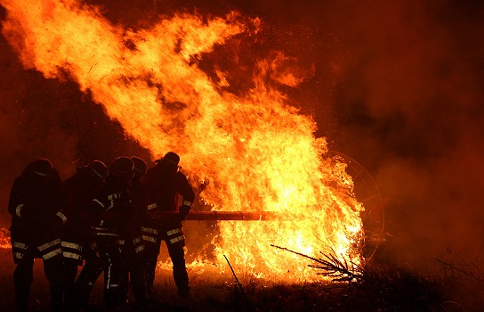 Weithin lodernde Flammen sorgten für mystisches Spektakel (Foto: Thomas Wilken)(tom) Die alte Tradition des Feuerrad-Rollens zum Abschluss der Fastnachtszeit - der Winter soll vertrieben werden - hat schon etwas Mystisches. Wenn dann auch wie jetzt in Heddesbach der Wind sein Spiel mit dem Feuer treibt, lässt sich erahnen, warum dieses als eines der vier Naturelemente in früheren Zeiten als so Ehrfurcht gebietend betrachtet wurde. Heute halten die örtliche Feuerwehr, der MGV und die Theatergruppe dieses grandiose Spektakel hoch, das im Ort schon seit der Zeit zwischen den Weltkriegen belegt ist.