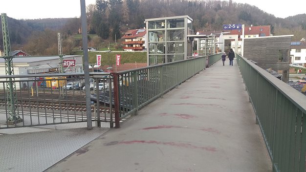 Mehrkosten gegenüber der Ursprungsplanung gibt es bei der Sanierung des Fußgängerstegs am Bahnhof (unser Bild). Statt 380.000 Euro, wie in der Gemeinderatssitzung am 1. Oktober 2015 beschlossen, soll die Maßnahme nun rund 443.000 Euro kosten. Stadtbaumeister Steffen Koch begründete die höhere Summe mit einem Übertragungsfehler in der ersten Kostenberechnung durch das beauftragte Ingenieurbüro.