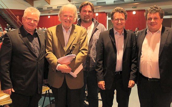 Windkraftanlagen sind für zu Guttenberg Teufelszeug Zweiter v.l.: Enoch zu Guttenberg. (Foto: Thomas Wilken)(tom) Sprachgewaltiger Rückenwind für die Windkraftgegner der Bürgerinitiative (BI) Gegenwind Beerfelden-Rothenberg: Mit Enoch zu Guttenberg hatten sie kürzlich einen prominenten Redner in die Alte Turnhalle geholt. Der arbeitete sich in seiner Philippika eineinhalb Stunden lang vorrangig an den Grünen und dem Bund für Umwelt- und Naturschutz Deutschland (BUND) ab, denen er wortreich, rhetorisch geschliffen und mit viel Pathos in der Stimme durch die Befürwortung des Windenergie-Ausbaus Verrat an der früheren gemeinsamen (Naturschutz-)Sache vorwarf.