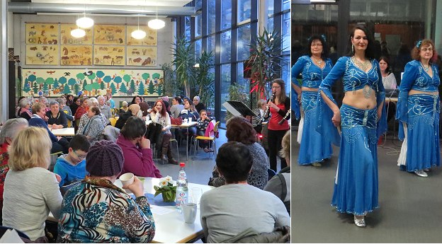 Bevor gegen 20.30 Uhr Susanne Walz-Beigel und Jana Kühn als DJs fungierten, präsentierten Magdalena Plagge, Tanja Wilbrandt und Hannah Richter musikalische Einlagen an Klarinette und am Klavier. Orientalische Tänze führten im Wechsel die Gruppen "El Nefous" und "Al Hadira" auf und luden zum Mittanzen ein. Liedgut zum Zuhören kam vom russischen Chor "Nadjeschda", und Mitsingen konnten die Gäste bei Taizéliedern.