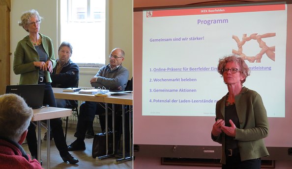 Vor etwa einem Jahr fand unter dem Motto "Leben in die Läden" in Beerfelden eine Veranstaltung statt, bei der zum Diskutieren und Mitmachen eingeladen wurde, um die Belebung der ortsansässigen Läden zu thematisieren. Auf Einladung der Stadt Beerfelden wurden gestern von Dorte Meyer-Marquart vom Büro für Umwelt- und Regionalentwicklung im Beisein von Ulrike Büchner vom Landratsamt des Odenwaldkreises die ersten Ergebnisse vorgestellt, die seither von Arbeitsgemeinschaften gesammelt wurden.