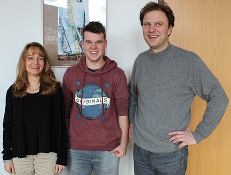 Erster Preis beim 35. Landeswettbewerb Der Preisträger Elias Wolf zusammen mit der Schulleiterin des HSG, Anja Katzner, und seinem Lateinlehrer, Matthias Berstel. (Foto: privat)