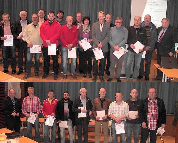 Verdiente Mitglieder geehrt Oben: Ehrennadel in Bronze für Hanni Emig (Mitte) und Adolf Reubold (li. daneben), re: Kreisfußballwart Wilhelm Paulus. Unten: Ehrenbrief für Thomas Münch (2. v. l.). (Fotos: privat)(bro) (he) Am 19. März wurden in Reichelsheim verdiente Mitglieder der ISV Kailbach geehrt. Es erhielten Hanni Emig (erste Vorsitzende) und Adolf Reubold für ihre langjährige Vereinstätigkeit die Ehrennadel in Bronze und Thomas Münch den Ehrenbrief des hessischen Fußballverbandes.