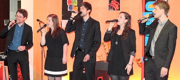 Annika Endres, Laura Bollack, Adrian Goldner, Manuel Nonnenmann und Fabian Weithoff präsentierten u.a. Stücke anderer A-Capella-Gruppen, aber auch eigene Arrangements. Unterstützt wurden sie bei diesem Auftritt von Raimo Bollack sowie dem Beatboxer Johannes Jäck.