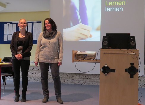 Strukturiert und motiviert Wissen aneignen Lucia Kotsch (l.) und Heike Feuerstein. (Foto: Claudia Richter)(cr) Ein bundesweites Projekt zum Thema "Lernen" richtet sich derzeit an Eltern zahlreicher Schulen. In Eberbach lud gestern der Gesamtelternbeirat zu einer Veranstaltung ein.