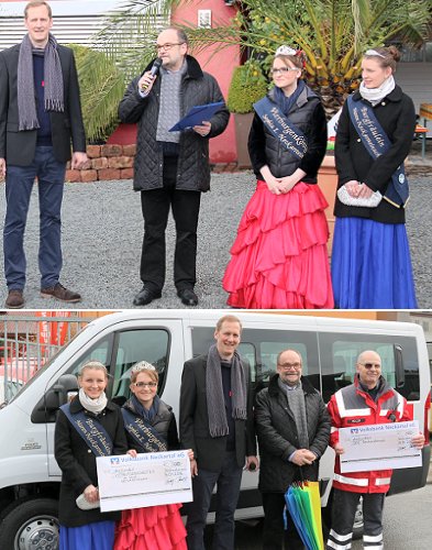 Freuen durfte sich auch das DRK: Der Gewerbeverein steuerte ebenfalls 300 Euro für das neue Bereitschaftsfahrzeug bei. Vorsitzender Hans-Peter Müller nahm dankbar den überdimensionalen Scheck von Hardt entgegen. Er wünschte sich mehr Engagement fürs örtliche Rote Kreuz. „Wir sind Tag und Nacht für Sie da“, sagte Müller. Das Fahrzeug wurde durch Spenden, aus der Kasse, einen Zuschuss vom Kreisverband sowie aus dem Erlös von Blutspendeaktionen und Kleidersammlungen finanziert, sagte er.