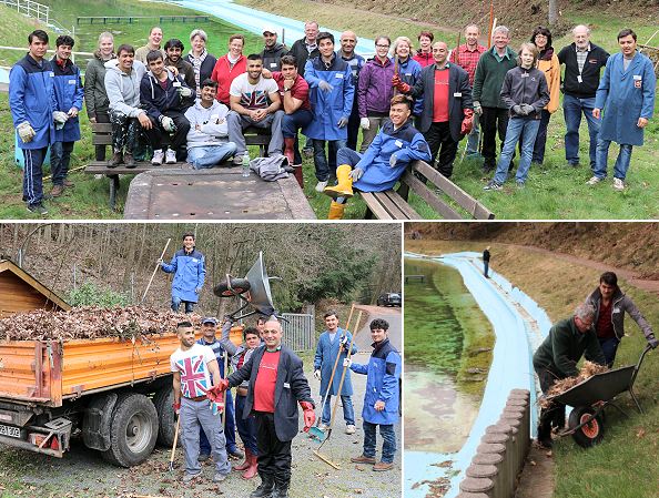 „Ohne die Jungs wären wir aufgeschmissen“, deutet die Vorsitzende dankbar in Richtung der Migranten. Die sind mit viel Engagement bei der Sache, rechen Laub zusammen, verfrachten es auf die Schubkarren und von dort auf den Anhänger, kriechen in den Büschen herum oder machen die Wege sauber. 1,05 Euro pro Stunde gibt’s vom Kreis für diese gemeinnützige Arbeit auf die normalen Bezüge obendrauf, weiß Wolfgang Schwöbel.