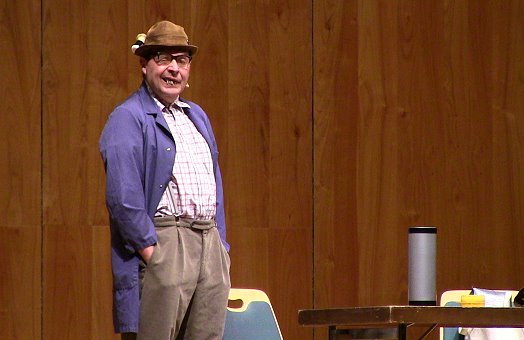 Rheinhessischer Comedystar in der Eberbacher Stadthalle (Foto: Hubert Richter)(hr) Vor gut 300 Zuschauern gab sich am vergangenen Samstag, 16. April, ein ganz besonderer Hausmeister ein Stelldichein in der Eberbacher Stadthalle: Der “Begge Peder” hatte allerlei derbe Geschichten auf Lager, die von Anfang an die Lachmuskeln strapazierten.