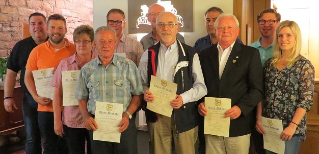 Für 40 Jahre Vereinszugehörigkeit wurden Klaus Eiermann, Hildegard Hildenbrand, Gerhard Koch, Günter Lipski, Robert Löffler, Gisela Oriwal, Karin Schreck und Jochen Schulz mit der goldenen Ehrennadel ausgezeichnet.
