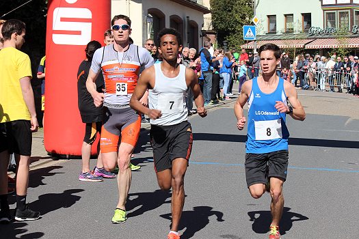 Pünktlich um 10 Uhr wurde der Hauptlauf über 8.000 Meter gestartet. 45 Läuferinnen und Läufer gingen zusammen mit neun Staffeln auf die fünf Runden. Hier gab es einen Doppelsieg für die TSG-Läufer. Jonas Uster (U20) war der dominierende Läufer im Feld. Gleichauf mit Henok Tesfahiwet (TSG) und Sebastian Bleitgen (VfL Michelstadt) gingen sie gemeinsam in die letzte Runde. Die Entscheidung fiel dann am letzten Anstieg in der Krebsklinge, als Jonas Uster das Tempo forcierte und sich bis ins Ziel in 28:09 Minuten deutlich von seinen Konkurrenten absetzen konnte. Weitere Alterklassensiege gab es für Björn Clemens (U18/KSV Reichelsheim), 31:19 min), Michael Ulrich (M40/KSV Reichelsheim, 31:19 min), Theodor Schaumlöffel (M50/Heidelberg, 30:54), und Horst Kowarsch (M60/Beerfelden, 44:07 min). Schnellste Frau war Kathrin Neumann (ohne Verein). Sie siegte in 37:09 Minuten knapp vor Sabine Schmidt (SV Falken-Gesäß) in 37:09 Minuten. Marion Ihrig (W50/ TSV Höchst) folgte auf Platz drei in 39:03 Minuten.