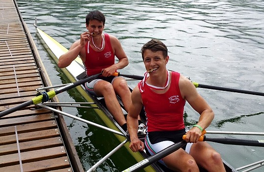 Vier Siege bei Ruderregatta in Sarnen in der Schweiz Moritz Braun (li.) mit seinem Partner Philipp Thein aus Karlsruhe. (Foto: privat)(bro) (tg) Vom 4. bis 5. Juni traten die Juniorinnen und Junioren der RG Eberbach bei der Ruderregatta auf dem Sarnersee in der Schweiz an. Bei dieser Regatta trafen die Rennruderer auf die gesamte Nachwuchselite aus der Schweiz mit dem Ziel, sich vor den Deutschen Juniorenmeisterschaften noch einmal den Schliff im Rennen zu holen.