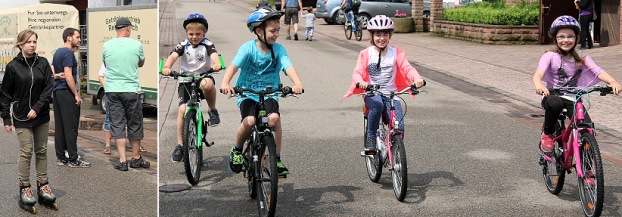 Weniger Teilnehmer als sonst auf der Strecke (Fotos: Thomas Wilken)(tom) Die unsichere Witterung hatte auch ihre Auswirkungen auf den Familien-Inliner- und Radtag zwischen den beiden Oberzent-Gemeinden Rothenberg und Beerfelden. Weniger Radler und Inline-Fahrer als sonst machten sich auf die etwa acht Kilometer lange Strecke. Jeweiliger Ziel- und Startpunkt war in Beerfelden am Parkplatz „Deltaparcours“ und in der Rothenberger Ortsmitte am Metzkeil. Zum zwölften Mal stellten beide Orte die an diesem Tag für den Autoverkehr gesperrte Straße der Bevölkerung zur Verfügung.