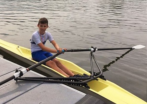 Drei Siege für den Rudernachwuchs bei der U-15-Qualifikationsregatta Nils Weber, Sieger im Leichtgewichts-Jungen Einer. (Foto: privat)(bro) (tg) In der Altersklasse der U15 führt der Weg zu den bundesweiten Meisterschaften über die Qualifikationsregatta in Baden-Württemberg. Hier muss man über die Renndistanz von 3.000 Metern unter die zwei besten Boote des Landes kommen, um sich einen Startplatz auf Bundesebene zu sichern. Am 11. Juni fand die baden-württembergische Qualifikation in Esslingen am Neckar statt. Insgesamt 184 Jugendliche gingen dort an den Start, um sich einen Startplatz für den Bundeswettbewerb Anfang Juli in Salzgitter zu errudern. Die Jüngsten der Rudergesellschaft Eberbach qualifizierten sich in drei Bootsklassen jeweils mit Siegen für den Einsatz im „Team Bawü“.