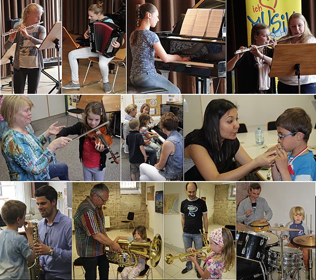 An jungen Talenten mangelt es nicht (Fotos:Wörner)(tw) Am vergangenen Samstag veranstaltete die Musikschule Eberbach e.V. ihren Tag der offenen Tür mit einem Konzert und der Möglichkeit fast alle Instrumente, für die es an der Schule Unterricht gibt, einmal unter fachlicher Anleitung auszuprobieren.