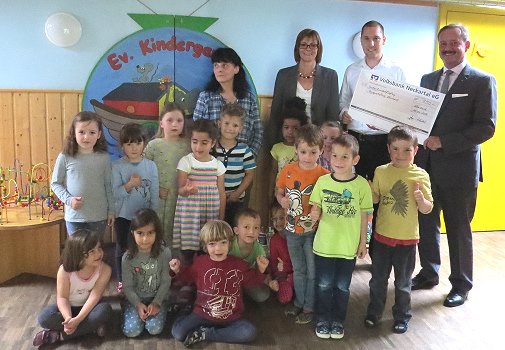 Frieder Reichert, Vorsitzender der Bürgerstiftung, nahm am Vormittag den symbolischen Scheck in Höhe von 750 Euro von Tanja Johe und Nico Buchmüller, beide zuständig für Vertrieb und Marketing bei der Firma Krauth, im evangelischen Kindergarten Arche Noah in der Berliner Straße entgegen. Dort soll das Geld den Vorschulkindern zugute kommen. Laut Reichert und Kindergartenleiterin Carmen Schreiber-Sohns soll das Geld, das seitens des Kindergartens für das Projekt "Mutig und stark" bei der Bürgerstiftung beantragt wurde, ab Oktober den etwa 18 Mädchen und Jungen die Teilnahme an sechs Unterrichts- und Trainingseinheiten ermöglichen, bei denen die Kinder lernen sollen, sich ohne verbale und körperliche Gewalt behaupten zu können.