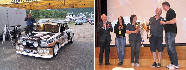 Zum fünften Mal Gesamtsieger wurden Peter und Heidi Redel, Renault R5 Turbo, Baujahr 1981, aus Mettlach (Strafzeit 0,93 sec.). Platz zwei belegte das Team mit der weitesten Anreise, Milos Kasper und Marie Janak, Austin Mini 1275 GT, Bj. 1973, aus Rokycany in Tschechien (1,27 sec.). Platz drei erkämpften sich Anton und Cornelia Lintner, VW Golf GTI 1, Bj.1989, aus Pfedelbach (1,27 sec.).