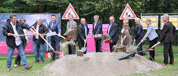 Auch das hessische Neckartal surft bald auf der schnellen Datenautobahn (Foto: Thomas Wilken)(tom) Die Internet-Zukunft fürs hessische Neckartal hat begonnen. An einem symbolträchtigen Ort, der Sängerhalle im zwischen Hessen und Baden-Württemberg geteilten Dorf Igelsbach, fand der Spatenstich fürs schnelle Breitbandnetz der Städte Hirschhorn und Neckarsteinach mit ihren Ortsteilen statt. Ab Mai 2017 sollen rund 3300 Haushalte mit 30 Mbit/s und mehr surfen können. Dafür werden von der Telekom etwa 30 Kilometer Glasfaserkabel verlegt.