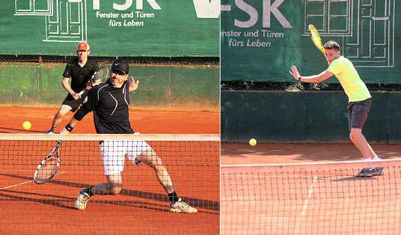 Erster Sieg der Badenliga Herren 60 und der Damen 40  Links: Doppel Herren 40/1. Rechts: Nils Rothenberger: 1. Herrenmannschaft. (Fotos: privat)(bro) (js) Ihren ersten Sieg feierten die Badenliga Herren 60 mit 6:3 gegen den TC SW Neckarau. Vier erfolgreiche Einzel mit Josip Varga, Peter Keller, Klaus Haas und Peter Heinrich sowie zwei Doppel mit Anton Ritter/Peter Keller und Klaus Haas/Günther Soder machten den Spielgewinn perfekt.