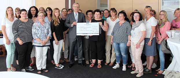 Symbolischer Scheck über 35.500 Euro überreicht (Foto: privat)(bro) (st) 68 Kindergärten und drei Kinderkrippen aus dem Geschäftsgebiet der Volksbank Neckartal freuen sich über eine regelmäßige Unterstützung. Über das Kindergartenförderprogramm der Volksbank Neckartal erhalten die genannten Einrichtungen alle zwei Jahre jeweils 500 Euro aus den Mitteln des Gewinnsparvereins Südwest e.V.. Am Montag, 4. Juli, überreichte Vorstandsvorsitzender Ekkehard Saueressig einen symbolischen Scheck über 35.500 Euro an die zahlreich erschienenen Teilnehmerinnen und Teilnehmer.