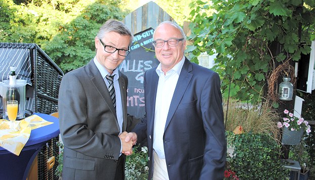 Prof. Dr. Stefan Leukel ist der neue Präsident Von re.: Dietmar Lamprecht und Stefan Leukel. (Foto: privat)(bro) (rs) Beim offiziellen Abend am 7. Juli fand im Restaurant "Strandgut" in Eberbach bei herrlichem Sommerwetter die Amtsübergabe beim Lions-Club statt.