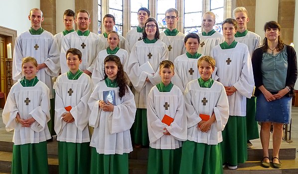 Die beiden Oberministranten hatten die Ministranten zusammen mit Sabrina Münch als erwachsene Betreuerin in den letzten Wochen auf ihren Dienst vorbereitet. Mit ihnen sind nun 36 Kinder, Jugendliche und junge Erwachsene in der Ministrantengruppe aktiv und unternehmen, neben ihrem Dienst in den Gottesdiensten, regelmäßig Ausflüge und treffen sich zu anderen Events.