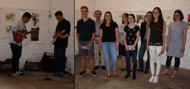 Zuvor waren die Kunstliebhaber mit Gitarrenmusik von Jesse Safferling und Tim Sensbach auf einen gemütlichen Nachmittag in der Galerie eingestimmt worden. Auch das Programm wurde von den beiden gekonnt und stimmungsvoll musikalisch umrahmt.