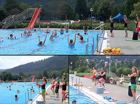 Schnupperkurs fand großen Anklang (Fotos: privat)(bro) (wh) Powern bis das Wasser kocht - diesen Aufruf folgten rund 30 begeisterte Aquajogger am vergangenen Sonntag im Freibad in Eberbach. Trotz des anfänglichen Regens ließen sich die Schnupperkursteilnehmer nicht davon abhalten, bei fetziger Musik rund eine Stunde einer gelenkschonendes Body-Workout Trainingseinheit beizuwohnen.